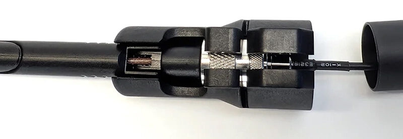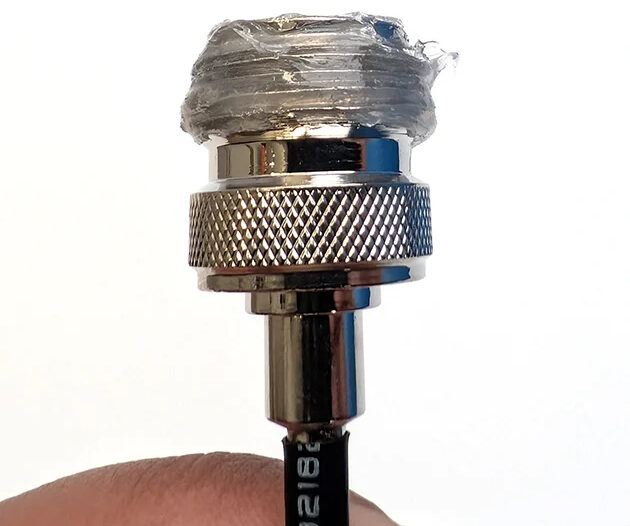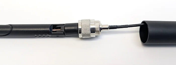 - 付属の Molykote 111 グリース を、アンテナケーブルのストレート(非角度)コネクタの外側ネジ山に十分塗布してください。