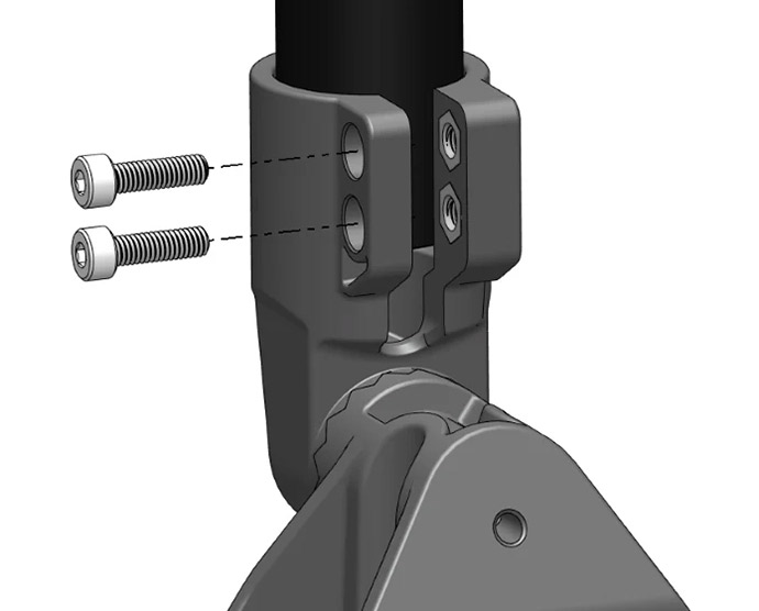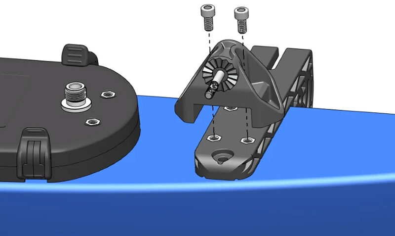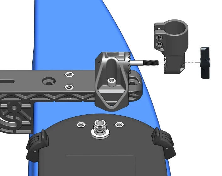 - 付属の M6×12 ネジ と 5mm 六角レンチを使用して、マストベースを BlueBoat のフレームに固定します。