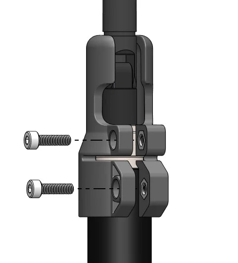 - M4×14 ネジ 2 本 と 3mm 六角レンチを使用して、アンテナホルダーをマストポール上部に固定します。
