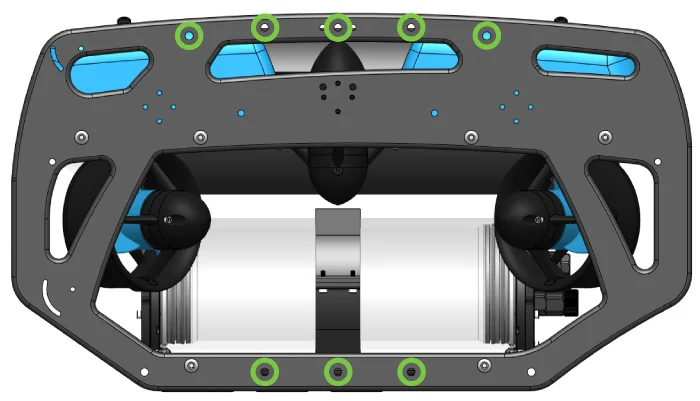 - バッテリーを取り外し、BlueROV2 の電源が完全にオフになっていることを確認します。