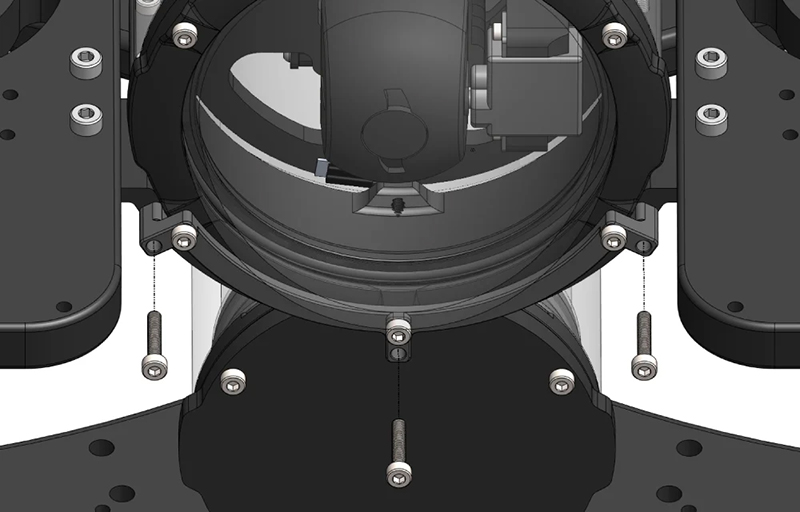 - BlueROV2 サイドパネルの既存穴を使用し、M6×12 mm ネジでプラスチックフレームに直接固定することも可能です(穴あけ不要)。