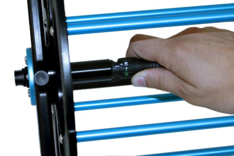 標準バージョンの場合、6本のM5x12ネジと3.0 mm六角ドライバーを使用して、6つのテザーリールスタンドオフを、スリップリングコアの長い方と同じ方向を向け、テザーリールの内面の最も外側の穴に固定します。