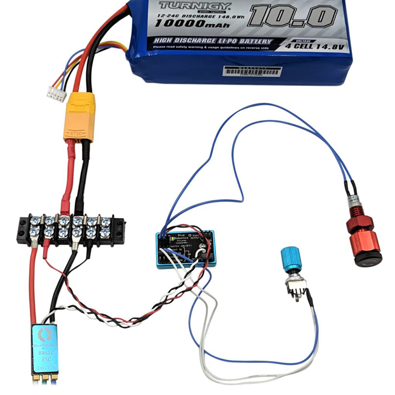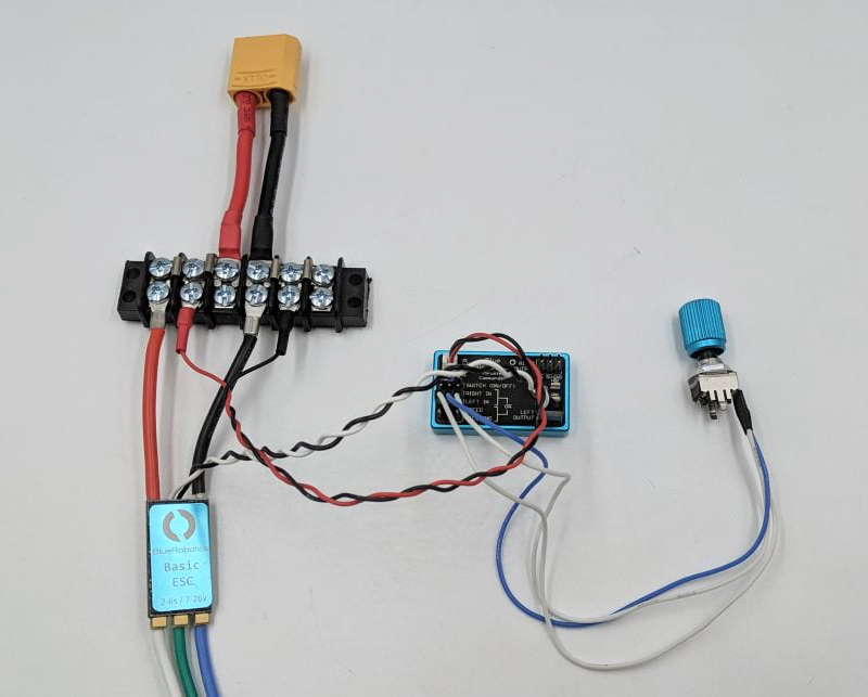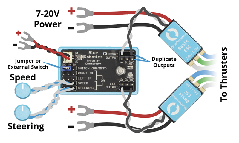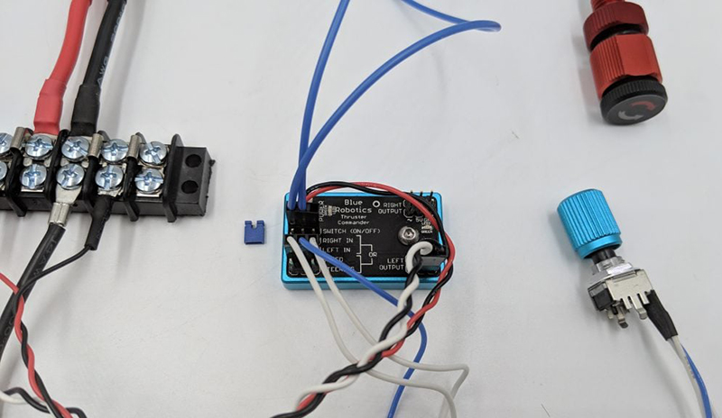 ポテンショメータの1つを「SPEED」入力ピンに接続します。 - ESCおよびスラスターの接続